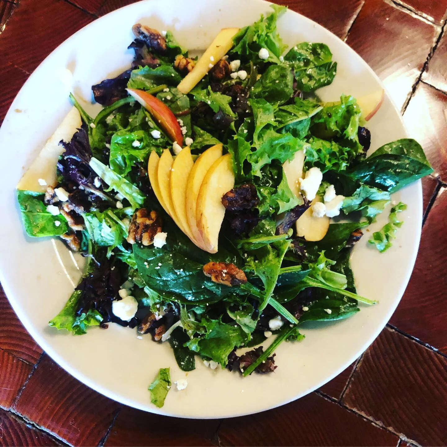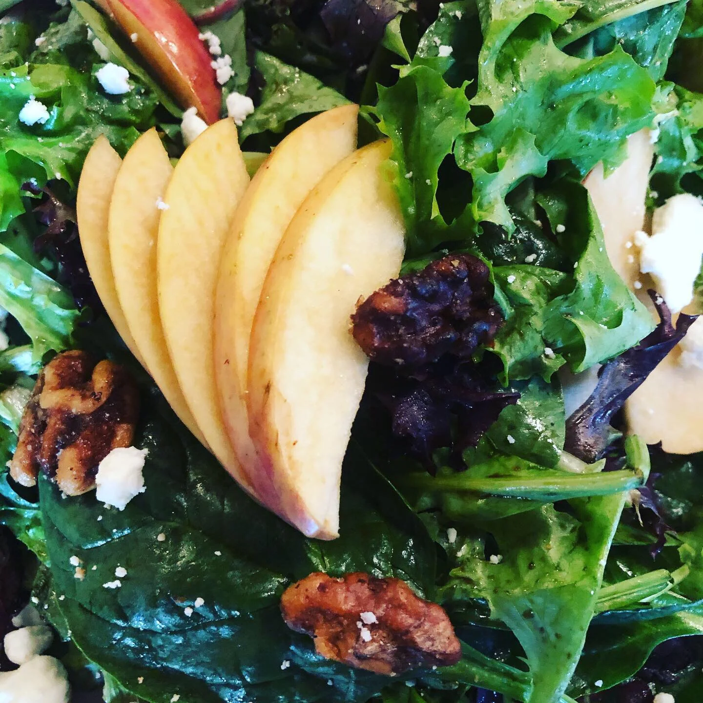 Looking for refreshing, energizing dish to fuel yourself? Try the Apple Walnut Salad, now on Oak’s Specials Menu! Organic spring mix, tossed in Oak’s balsamic vinaigrette, topped with Granny Smith apple slices, candied walnuts, and crumbled goat cheese. 🍎🥗🥜