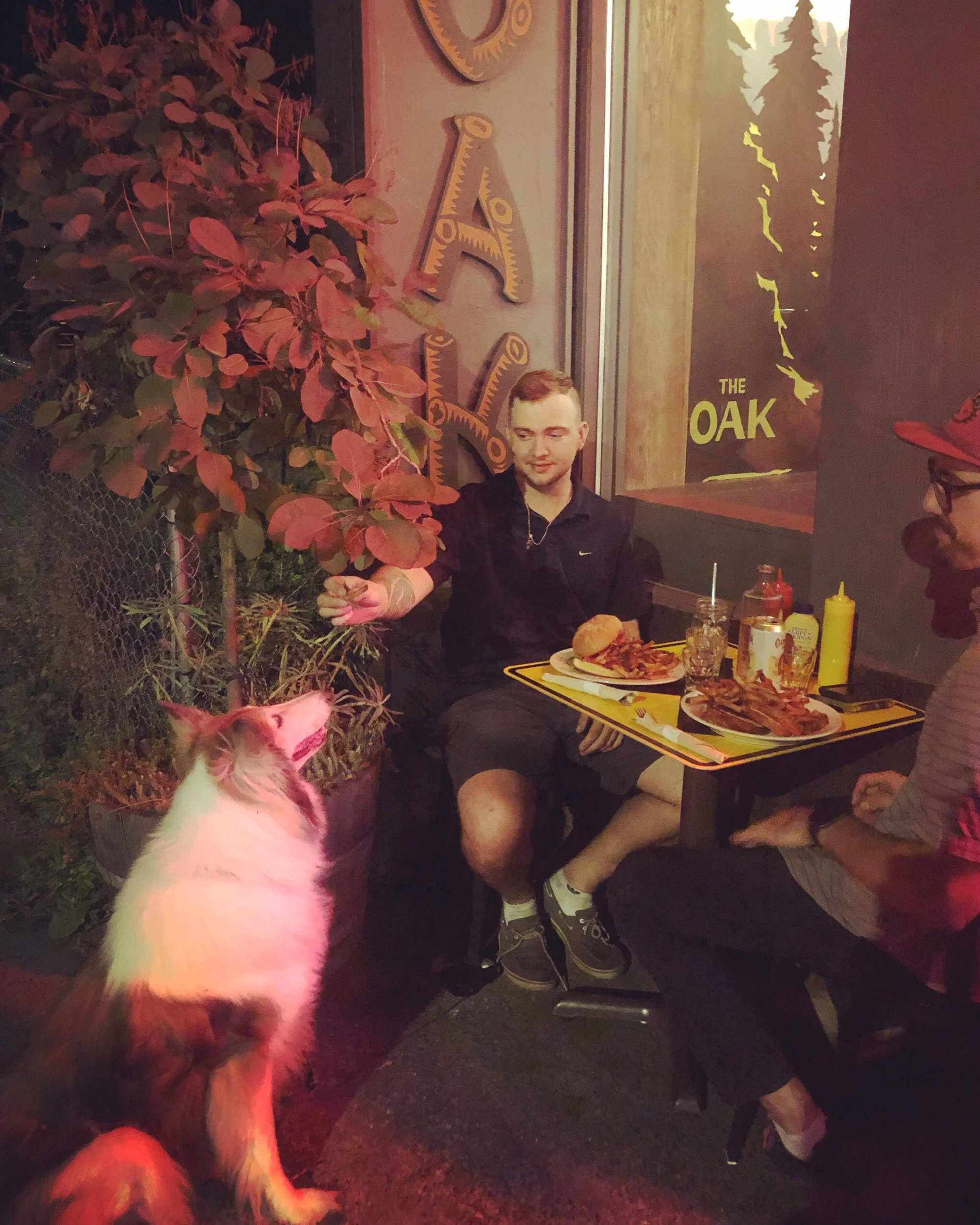 One of our lovely regulars, Josh, and his beautiful canine Harley, enjoying an Oak sidewalk cafe experience together! Sharing is caring! πΆβ₯οΈπ