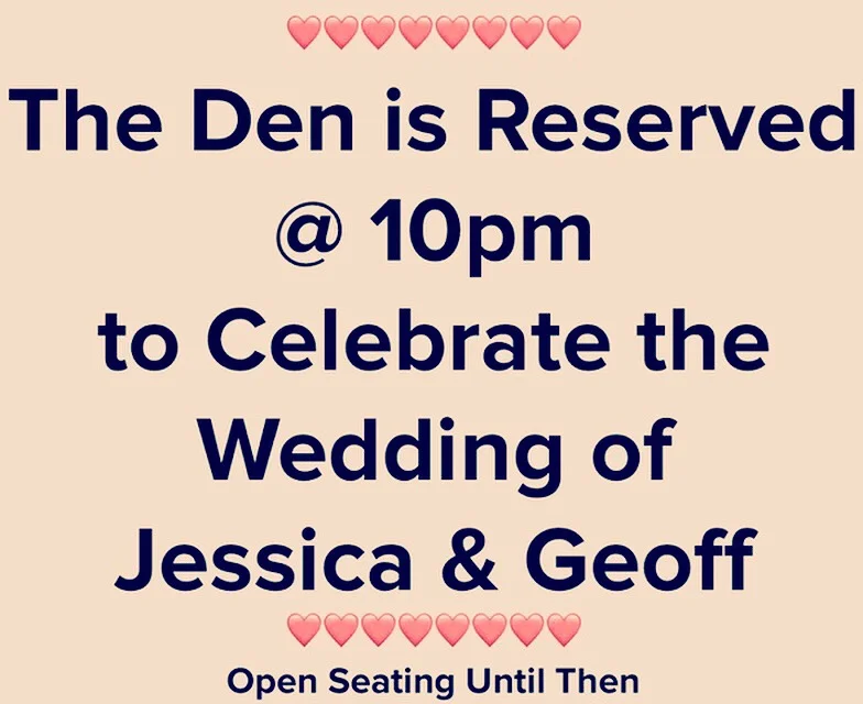 CONGRATULATIONS to Geoff and Jessica!! We are so stoked and honored that we get to host your after-wedding party in Oakβs Den!! πππΎπ₯