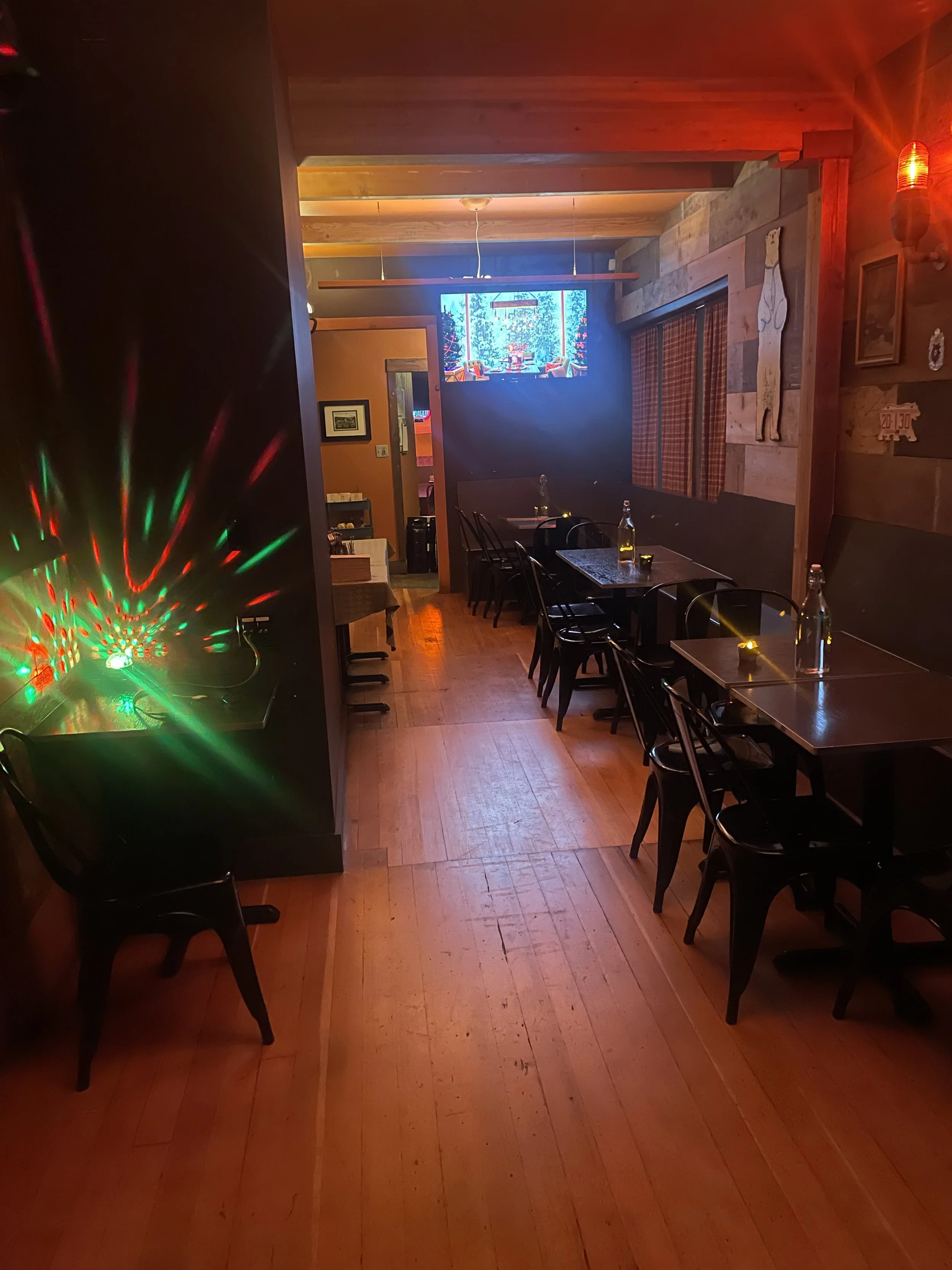 The Den is such a cozy space to have a private party! We have DJ kits and plug-ins for a curated music experience, a TV, and moody lights to tie it all together. Holiday disco ball? CHECK! 🎄🕺🏻✨