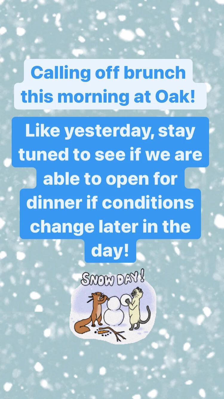 Like yesterday, several of us are on weather watch, and if we can make a dinner service happen for you, we wil. Check in after a few hours to see our assessment! Love to you all! ❄️❤️❄️